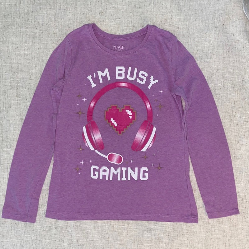 Introducing the ultimate gaming companion - our Gaming Tee! This long sleeve shirt is perfect for any girl who loves to game. From cozying up with a controller to dominating the leaderboards, this tee will keep you comfortable while you play. Level up your style with our Gaming Tee!